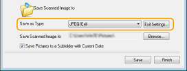Ako odaberete [JPEG/Exif], prilikom spremanja možete u JPEG datoteke dodati podatke kao što su datum ili komentari. Odaberite skeniranu sliku, kliknite [Exif Settings] (Postavke formata Exif), a zatim unesite komentare na zaslon koji će se prikazati.