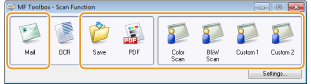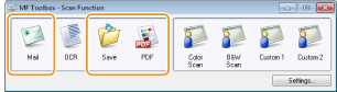 Skenirane dokumente možete spremiti na računalo, proslijediti ih u navedenu aplikaciju radi uređivanja ili ih priložiti poruci e-pošte. MF Toolbox odlikuje se unaprijed definiranim postavkama za svaku priliku, uključujući pretvaranje u PDF i skeniranje u boji. Odabirom unaprijed definirane postavke možete jednostavno skenirati.