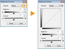 Prilagođava svjetlinu i kontrast (razliku između svijetlih i tamnih dijelova) slike. Da biste prilagođavali uz istodobnu provjeru na grafikonu, kliknite