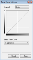 Krivulja tonova jest zakrivljena crta koja naznačuje razine svjetline i kontrasta na slici prije i nakon prilagodbe. Odaberite prethodno registriranu krivulju tonova da biste prilagodili svjetlinu i razinu kontrasta slike.