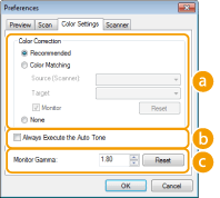 Dokument se može prikazati uz odgovarajuću razinu svjetline definiranjem gama-vrijednosti za zaslon računala na kojem se prikazuje skenirana slika. Ta se postavka primjenjuje ako za mogućnost [Color Mode] (Mod boje) odaberete [Color] (U boji) ili [Grayscale] (Sivi tonovi).