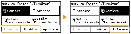 Atingeţi <Anterior> sau <Următor> pentru a muta butonul şi atingeţi <Aplicare>.