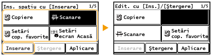 Atingeţi butonul unde doriţi să introduceţi un spaţiu şi atingeţi <Inserare>.