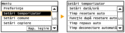 Puteţi modifica mai multe setări cu privire la afişaj, precum viteza de derulare sau limba de afişare: