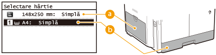 Trebuie să specificaţi mai întâi dimensiunea şi tipul hârtiei care este încărcată în sursa de hârtie.