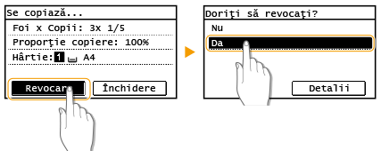 Atingeţi <Revocare> pe ecranul care se afişează în timpul copierii