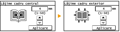 Când copiaţi documente care sunt mai mici decât dimensiunea hârtiei pe care se copiază, liniile cadrului pot apărea în jurul marginilor în imaginea copiată. Când copiaţi pagini opuse din cărţi groase, pot apărea borduri întunecate. <Ştergere cadru> permite ştergerea acestor linii de cadru şi borduri întunecate.