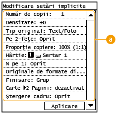 Selectaţi articolul pe care doriţi să îl setaţi şi modificaţi valoarea implicită.