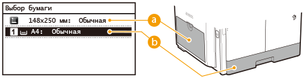 Сначала необходимо указать формат и тип бумаги, загруженной в источник бумаги.