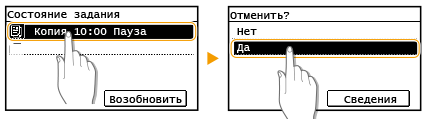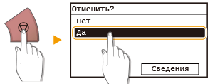 Коснитесь элемента <Отмена> на экране, отображаемом в процессе копирования