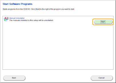 Нажмите кнопку [Start] (Запуск) в окне [Manual Uninstaller] (Средство удаления руководств).