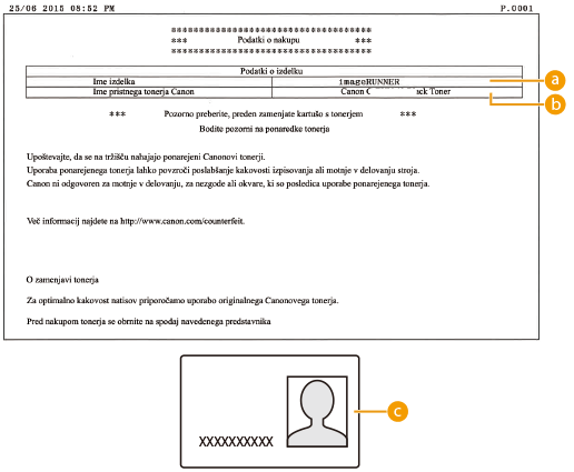 Optično preberete in registrirate lahko dokumentacijo lokalnega pooblaščenega Canonovega prodajalca (poslovno kartico, druge podatke itd.) Njegove kontaktne podatke lahko zatem natisnete, ko vam zmanjka potrošnega materiala.