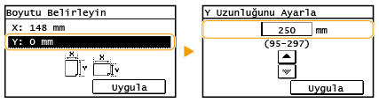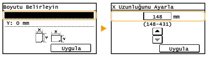/ öğesini kullanarak <X: "> tarafının uzunluğunu girin, / öğesi ile imleci haneler arasında gezdirerek tam sayıları ve kesirleri girin ve <Uygula> öğesine dokunun.![]() |