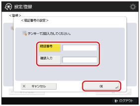 [暗証番号]を押して、[暗証番号]と[確認入力]に「0000003」と入力し、[OK]を押します。