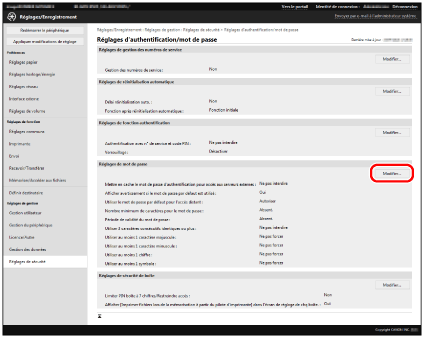 Cliquer sur [Modifier] dans [Réglages de mot de passe].