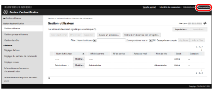 Pour définir les rôles et les comptes utilisateur, et spécifier les préférences des périphériques, se connecter à User Authentication.
