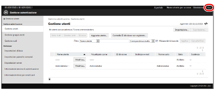 Per gestire i ruoli e gli utenti e per specificare le preferenze delle periferiche, accedere a User Authentication.