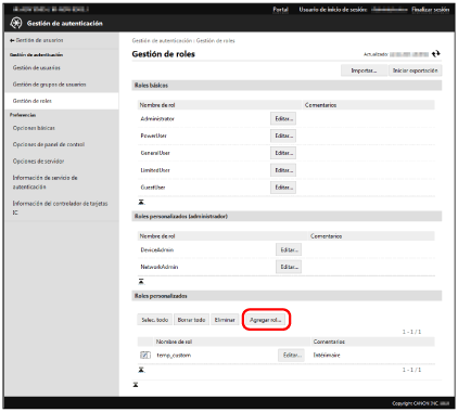 Creación de roles personalizados en dispositivos imageRUNNER ADVANCE