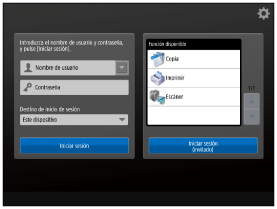 Cuando se pulsa [Iniciar sesión] después de introducir un nombre de usuario y una contraseña, se lleva a cabo la autenticación de usuario y aparece la pantalla para especificar la configuración detallada de la función, solo si el usuario puede utilizar esa función.