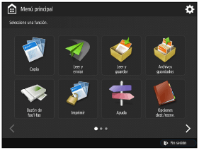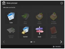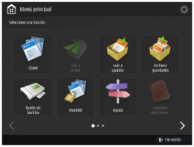 Cuando se utiliza Access Management System con la pantalla de Inicio de sesión de nivel de función, si ha finalizado la instalación de Access Management System, aparecerá la pantalla [Menú principal] en la pantalla táctil.