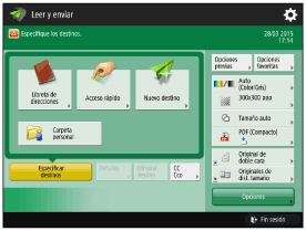 Función Enviar/almacenamiento en red | Envío de correos electrónicos, envío de correos electrónicos con Enviarme a mí, envío de I-faxes, envío de faxes, envío a servidores de archivos, uso de la función de envío Carpeta personal, métodos para especificar destinos, especificación del formato de envío, registro de destinos de red |