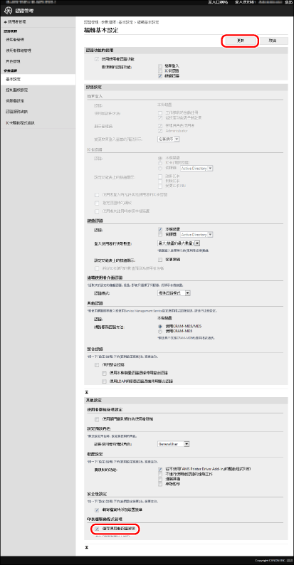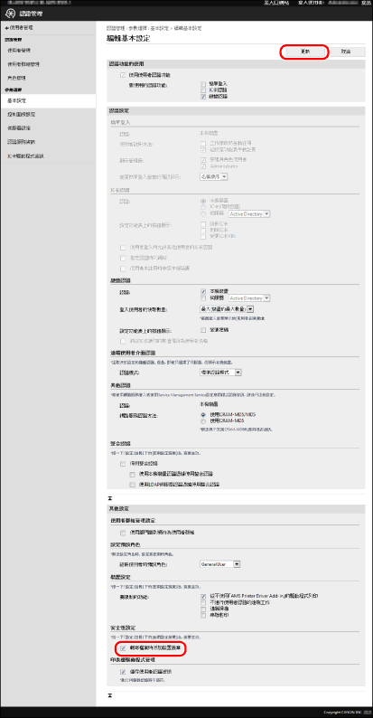 [安全性設定] 設定會在重新啟動裝置後啟用。如需重新啟動裝置的資訊,請參閱裝置的使用手冊。 |