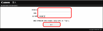 輸入裝置限制管理員的使用者名稱與密碼 → 在 [登入目標] 中選擇 [本裝置] → 按一下 [登入]。