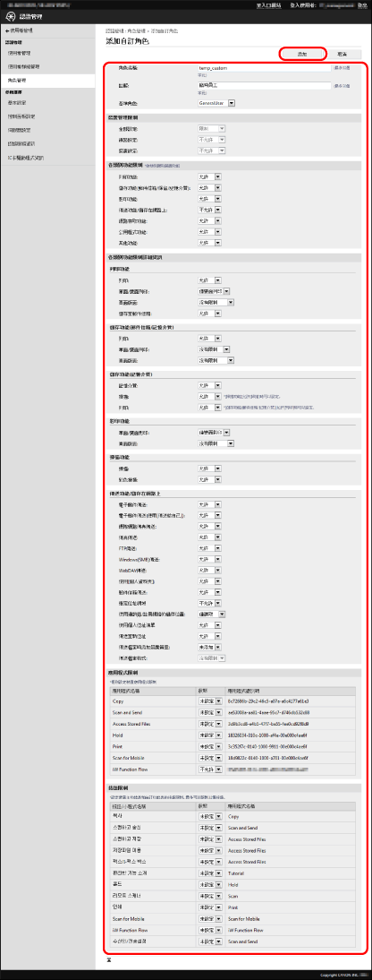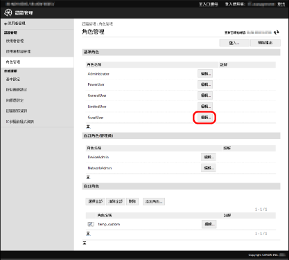 此外,請確認/編輯 [GuestUser] 角色的內容,確保適當地執行使用者管理。