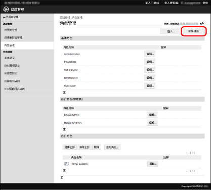 按一下 [角色管理] 頁面上的 [開始匯出]。