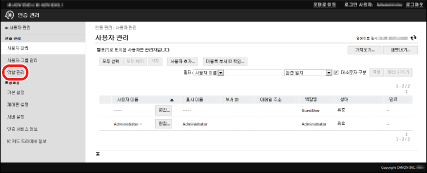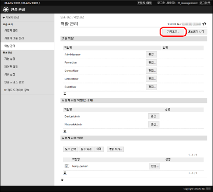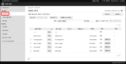 [설정/등록] → [사용자 관리] → [인증 관리] → [역할 관리]를 클릭합니다.