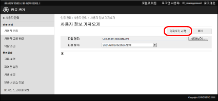 [User Authentication 형식] 이외의 다른 형식으로 된 파일 또한 가져올 수 있습니다. 자세한 내용은 본 장치의 사용 설명서를 참조하십시오. |