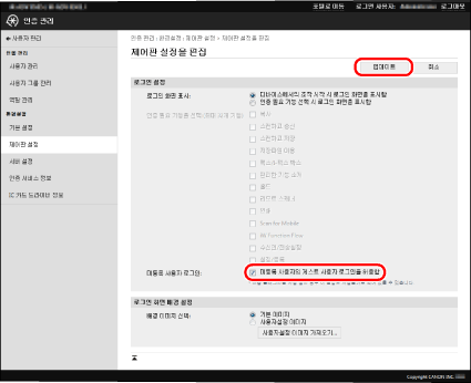 이 항목의 설정으로 제한되는 작업에는 원격 UI에서 직접 인쇄 또한 포함됩니다. [제한할 기능]에서 [AMS Printer Driver Add-in 없이 드라이버에서 인쇄]를 선택하면 원격 UI에서 직접 인쇄를 사용할 수 없습니다. 인쇄 제한을 지원하지 않는 작업의 인쇄를 제한하지 않을 경우에는 AMS Printer Driver Add-in이 설치되지 않은 컴퓨터 또는 알 수 없는 사용자가 로그온한 컴퓨터에서의 인쇄를 금지할 수 없습니다. |