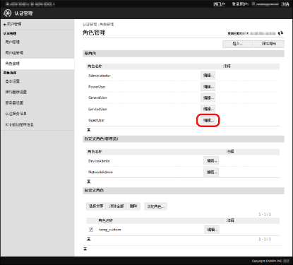 建议在编辑[GuestUser]角色后导出角色信息进行备份。有关详细信息,请参阅“导出角色”。 |