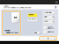奥まで差し込むと、用紙サイズと種類を設定する画面が表示されます。