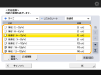 2 | 用紙サイズを選び、<OK>を押す ![]() ![]() インチサイズを選択する場合は、<インチサイズへ>を押します。 |