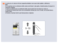 Quando si sostituiscono le cartucce di toner, seguire le istruzioni visualizzate nel video insieme a quelle scritte sotto.