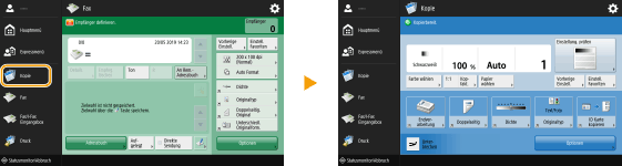 Sie können eine Schnelltaste für die Funktionen im Bildschirm <Hauptmenü> anlegen. Verwenden Sie diese Taste, um auf eine andere Funktion zuzugreifen, ohne zum Bildschirm <Hauptmenü> zurückzukehren. Zum Anlegen einer Schnelltaste melden Sie sich mit Administratorrechten an.