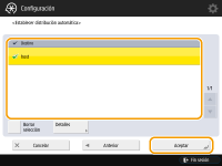 Distribución y actualización de la información del dispositivoLa información del dispositivo podría no distribuirse ni actualizarse si el equipo cliente está procesando otros datos. Si un equipo cliente no puede recibir la información del dispositivo distribuida automáticamente a la hora especificada, no se volverá a realizar la distribución hasta la siguiente hora especificada. Recibir información de dispositivo de distintos modelos de impresora multifunción CanonCuando el equipo se utiliza como un equipo cliente, puede recibir información de dispositivo de distintos modelos de impresora multifunción Canon si la opción <Restringir recepc. info. dispositivos> de <Opciones de recepción> se configura en <No>. No obstante, tenga en cuenta que es posible que parte de la información no se distribuya correctamente. Seleccione las funciones sobre las que quiere recibir información del dispositivoCuando el equipo se utiliza como equipo cliente, puede restringir las funciones sobre las que hay que recibir información configurando <Restringir recepc. para cada función> de <Opciones de recepción> en <No>. Restaurar la información del dispositivo anteriorPuede realizar operaciones en el equipo cliente para restaurar la información del dispositivo existente antes de llevar a cabo la actualización. Sin embargo, solo puede restaurar la información que existía inmediatamente antes de la actualización. La información más antigua no se puede restaurar. Tenga en cuenta también que las opciones de <Opciones env. URL> en <Establecer/Guardar buzones fax confidencial> (<Establecer/Guardar buzones fax confidencial>) se pueden borrar si los datos de <Valor de configuración> y de <Libreta de direcciones> no se restauran al mismo tiempo. <Gestión del dispositivo> <Opciones distribución información dispositivo> |