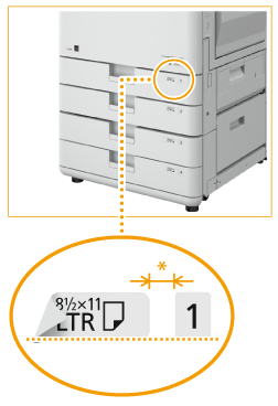 Coloque la etiqueta con el tamaño de papel a la misma altura que el indicador del número del casete y a unas 1/4" (5 mm) hacia la izquierda.