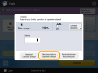 Si desea cambiar algunas de las opciones, como la escala de copia o la densidad del siguiente original, pulse <Cambiar opciones> en la pantalla, cambie las opciones y proceda con el paso 7.