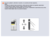Aparece un mensaje de error si instala el cartucho de tóner antes de esparcirse el tóner del interior. Siga las instrucciones de la pantalla y realice el procedimiento de nuevo.