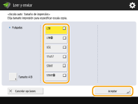 Seleccione el tamaño de lectura y pulse <Aceptar>.