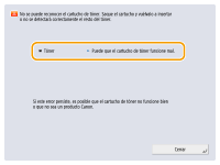 Reinicie el equipo. Si el mensaje no desaparece al reiniciar el equipo, apunte el mensaje y póngase en contacto con su distribuidor autorizado de Canon.