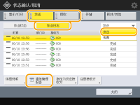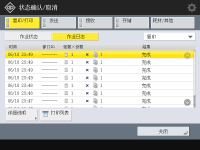 (状态确认/取消)时,显示状态监视/取消屏幕,允许查看每项功能的使用历史,比如复印、打印、发送电子邮件、发送/接收传真/互联网传真、在“高级存储箱”中存储文件等。同样可以通过此屏幕打印每项功能的使用历史。![]() |