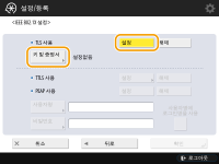 1 | <TLS 사용>을 <설정>으로 누르고 <키 및 증명서>를 누릅니다. |
