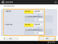 3 | IPSec을 적용할 포트를 지정합니다. IPSec을 적용할 포트를 지정할 때 포트 번호를 사용하려면 <포트 번호로 지정>를 누릅니다. IPSec을 모든 포트 번호에 적용하려면 <모든 포트>을 선택합니다. IPSec을 특정 포트 번호에 적용하려면 <단일 포트>를 누르고 포트 번호를 입력합니다. 포트를 지정한 후, <확인>을 누릅니다. 본 기기의 포트는 <로컬 포트>에 지정하고 통신 피어의 포트는 <리모트 포트>에 지정합니다. ![]() IPSec을 적용할 포트를 지정할 때 서비스 이름을 사용하려면 <서비스명으로 지정>을 누릅니다. 목록에서 서비스를 선택하고 <서비스 설정/해제>를 눌러 <설정>으로 설정한 후, <확인>을 누릅니다. ![]() | ||||||||||||||