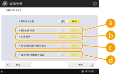 SMB 서버에 연결할 때 SMB 패킷 서명을 요청하려면 <설정>을 누릅니다.