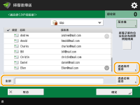 如果註冊接收者時設定了存取號碼,請按下 <存取號> 並使用數字鍵輸入存取號碼。對應的接收者會顯示在通訊錄中。