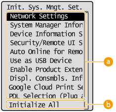 <System Management Settings>    <Initialize Menu>    Select the item you want to initialize    <Yes>