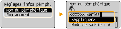 Saisissez un nom et un site d'installation visant à identifier l'appareil de 32 caractères alphanumériques maximum.